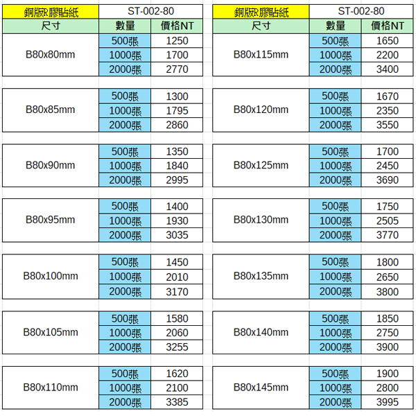 銅版R膠貼紙80x80~80x145mm(2000張)