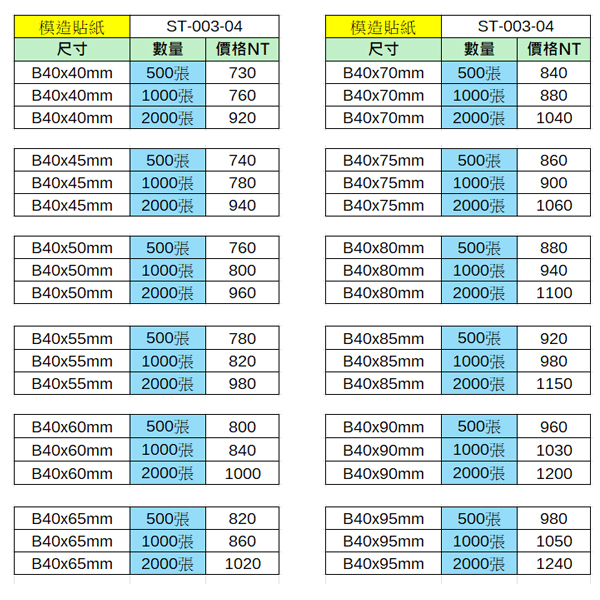 | B40x60mm | 2000張 | 1000元 | B40x90mm | 2000張 | 1200元 | |