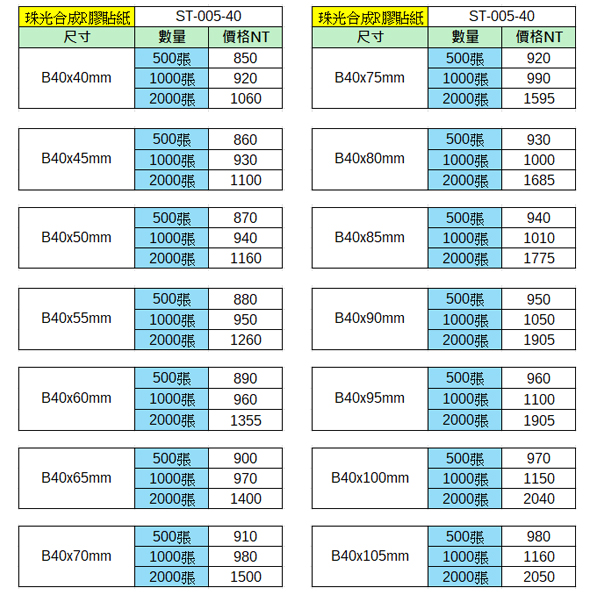 珠光合成R膠貼紙40x40~40x105mm(2000張)