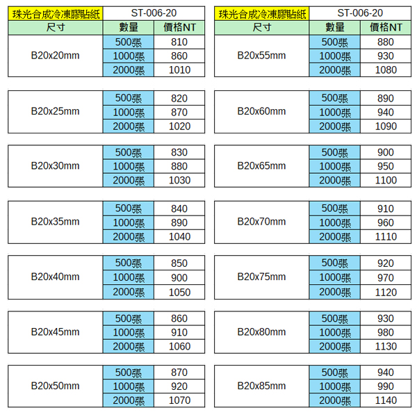 珠光合成冷凍膠貼紙20x20~20x85mm(2000張)