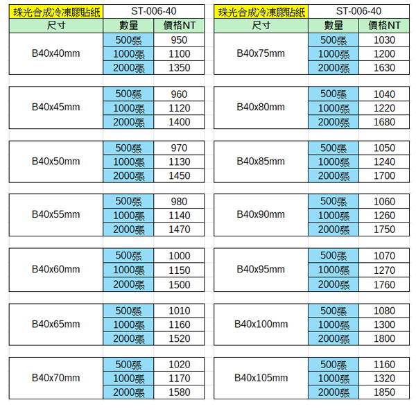 珠光合成冷凍膠貼紙40x40~40x105mm(1000張)