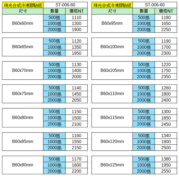 珠光合成冷凍膠貼紙60x60~60x125mm(2000張)