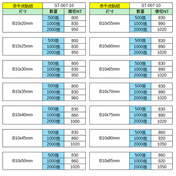 赤牛皮貼紙10x20~10x85mm(2000張)